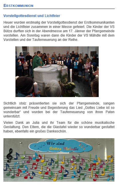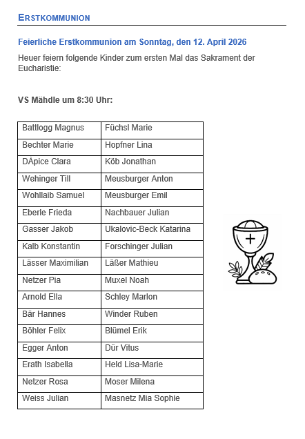 Herzlich willkommen zum Newsbereich unserer Pfarre! Hier erfährst du alles über unsere aktuellen Aktivitäten und Neuigkeiten aus der Gemeinde.
